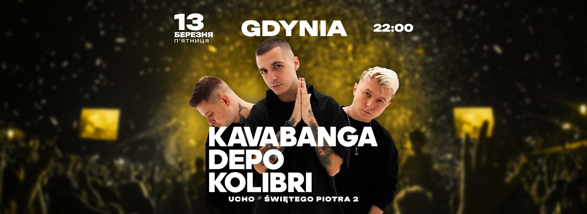 13 березня 2026 року у концертному залі Ucho відбудеться довгоочікуваний концерт Kavabanga Depo Kolibri — легендарне тріо з Харкова, яке підкорює серця слухачів по всій Європі🇪🇺🚀